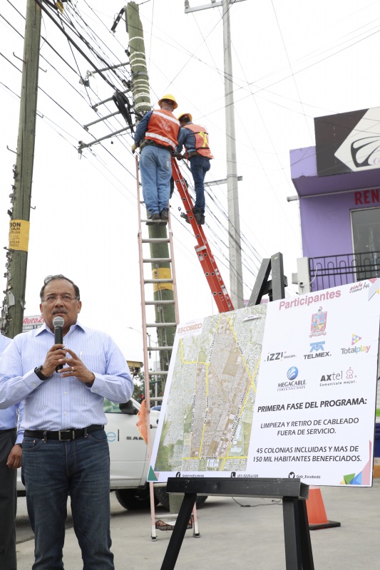 Para combatir la contaminación visual y mejorar la imagen urbana de la ciudad, el Gobierno Municipal de Escobedo arrancó el programa de limpieza y retiro de cableado fuera de servicio.
